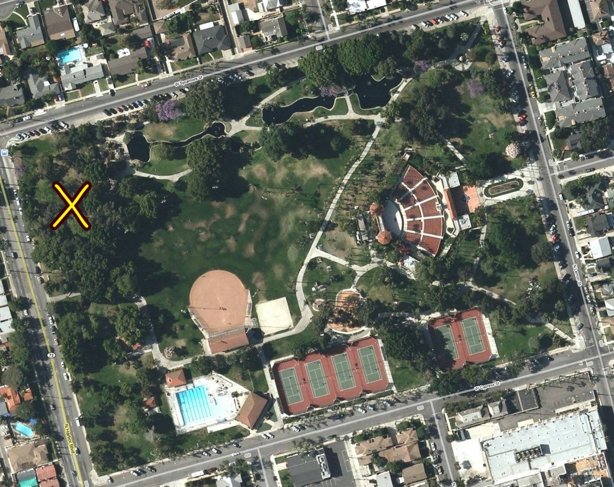 The picnic will start at noon on Saturday, April fourth, 2009 in the north west corner of Pearson Park in Anaheim. (Google maps "Harbor and Sycamore, Anaheim CA" and it will come right up.) I've put in some photographs of the location below, and there's a couple of maps at the bottom of the page.