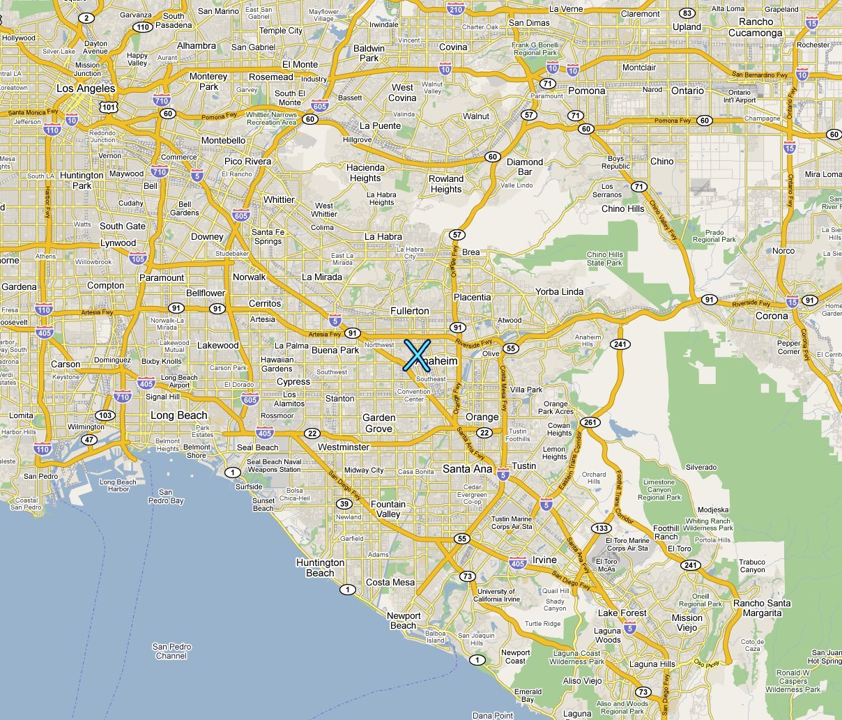 The easiest way there is to get off the 5 freeway at Lincoln, go east on Lincoln, and then go north on Harbor.